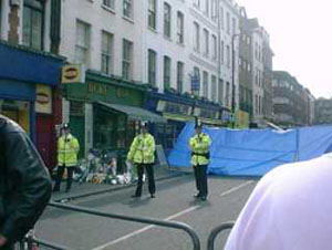 Selon la police,l'engin explosif était rudimentaire, et a été concu pour provoquer le maximum de dégâts. Il contenait des clous qui se sont éparpillés dans un important périmètre. Très rapidement, l'enquête de Scotland Yard s'est orientée sur la piste d'un jeune homme, repéré grâce à une caméra de vidéo-surveillance. Les policiers britanniques ont arrêté samedi matin tôt à son domicile de Cove, dans le sud-ouest de Londres, David Copeland, un technicien âgé de 22 ans. Il s ont retrouvé dans son appartement des produits combustibles qui lui auraient servi à confectionner l'engin meurtrier. Il devait être présenté lundi à la justice anglaise. Il semblerait que le suspect ait agi seul et de sa propre initiative, en tout cas sans rapport avec des groupuscule d'extrême-droite qui avaient revendiqué l'attentat, de même qu'ils avaient revendiqué deux autres autres explosions à caractère raciste qui avaient frappé les communautés afro-antillaises et bengladeshi de la capitale britannique dans les semaines passées. ![]() 3.000 manifestants marchent pour dire halte au racisme Dès le lendemain de l'explosion, 2 à 3.000 personnes ont défilé dans les rues de Londres pour dire non au racisme. Avec les membres des principaux groupes homosexuels - OutRage!, Stonewall, le London Lesbian & Gay Switchboard - marchaient des représentants de l'Alliance Nationale contre le Racisme, la Ligue Anti-Nazi, et l'Alliance Nationale Noire. Les manifestants portaient des pancartes réclamant des mesures éducatives pour lutter contre le racisme, et clamaient «blancs, noirs, gays ou hétéros, quand les facistes attaquent, on répond». Une soirée du souvenir sera organisée une semaine jour pour jour après l'attentat à Old Compton Street, devant l'Admiral Duncan.