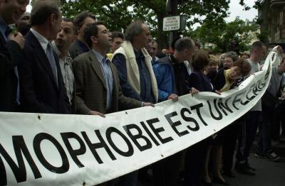 Pour la première fois, les personnalités du carré de tête portent la banderolle du slogan :