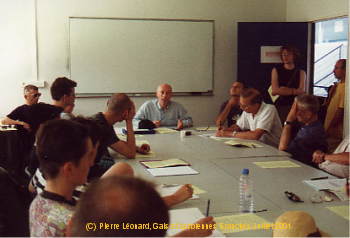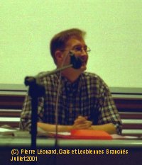 Première journée de travail pour certains, première journéede plage pour d'autres. Les congressistes cherchent leur rythme. Le panneau d'affichage des activités de la journée se remplit vite. Il suit en cela l'habituelle organisation : des cycles, des forums aux horaires protégés, des ateliers et des sessions off en parallèle. Le congressiste, par tant de choix, parfois 10 ateliers concurrents se résout à la frustration. Reconnaissons pour les organisateurs qu'une UEH n'est pas un congrès professionnel. Au UEH, la participation aux ateliers est toute relative. Est-ce l'été, les vacances, le soleil, les fêtes, la culture gaie. Il a fallut faire un choix pour vous donner le ton de cette UEH 2001, nos reporters n'ayant pas le don d'ubiquité. Intégration Jean Michel Dariosecq a préparé