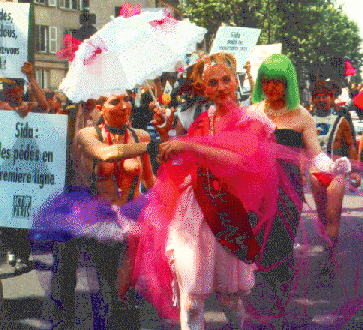 Cleews as Miss Act Up, at the Gay Pride March, June 93.