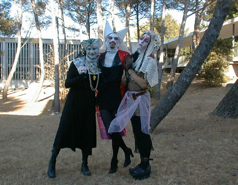 ans. Créées sous Gaston Defferre, les UEH sont devenues UEEH. En effet l'Europe et la spécificité méditerranéenne ont pris de la consistance, avec la présence de roumains, de grecs, d'algériens et de marocains. De même, le contexte politique a changé, la Mairie de Marseille est maintenant à droite, et chacun sait que pour dîner avec le diable que nous sommes il lui faut une longue cuillère.... Mais revenons à cette première journée, visiblement placée sous le signe de l'improvisation. Dès 14 heures, les premiers inscrits pouvaient découvrir le salon des associations, qui se tiendra également demain. ![]() l'accueil des participants Jacques Fortin, président de la manifestation, bien connu des gays marseillais, a fait avec cette UEEH un come-back remarqué et apprécié. A 18 heures, il lançait les discours d'accueil et d'inauguration, en présence d'un adjoint venu représenter le maire Jean Claude Gaudin. Geneviève Pastre a pris également la parole, suivie par les Soeurs de la Perpétuelle Indulgence. ![]() les soeurs dans la nature Enfin tout le cortège s'est lancé à la découverte des espaces de conférences, d'ateliers, de séminaires, de loisirs, que nous allons partager durant cette semaine d'échanges et de festivités. La cafétéria, les jardins, patios et fontaines, le chant permanent des cigales, ont conquis les participants étrangers, et laissent augurer l'enthousiasme des 350 inscrits. Un apéritif en plein air clôturait l'après-midi. Après dîner, une conférence permettait de présenter les ateliers prévus pour les jours à venir, mais aussi les ambitions à plus long terme de l'UEEH. Celle-ci espère devenir une manifestation annuelle, avec dans l'intervalle la publication d'actes bi-annuels et la coordination d'actions méditerranéennes. La Roumanie sera sans doute cette année la communauté à laquelle nous tendrons la main, vu la situation difficile des gays dans ce pays. Qu'il suffise de dire que tous les Roumains n'ont pu obtenir leur visa de sortie, et que toutes les coutures de leurs bagages ont été inspectées au sortir de Roumanie... Attendu que tous les Algériens n'ont pu non plus quitter leur pays, il y a du pain sur la planche pour rappeler à l'espace méditerranéen la dignité culturelle et sociale de l'homosexualité dans son passé pré-chrétien. Enfin, les Gay Musette ont animé un bal en plein air, car malgré la chaleur, les cigales ont laissé la place à la fraîche. On a aperçu Jean Le Bitoux, et le MAG est enfin arrivé... Un désordre certain a régné en ce premier jour, le programme fera encore l'objet de modifications, des interventions tardives s'étant ajoutées. Du côté des bénévoles, c'est tout à fait l'auberge espagnole, on se débrouille avec ce qu'on trouve, en tachant de garder le sourire. La FQRD est présente par le suivi de la manifestation, mais aussi par l'animation d'un cyber-espace (grâce aux lignes Numéris offertes par France Telecom), où il sera possible de consulter son courrier, de surfer sur le web, mais peut-être aussi de voir naître des projets cybergays. Il faut dire que les médias ne se sont guère dérangés, nous sommes probablement les seuls à avoir prévu une couverture média. Aussi, si vous voulez savoir ce qui se passe, rendez-vous demain et chaque jour ici-même... Donald SUZZONI A 30 minutes et une bouteille d'eau de l'UEEH... la calanque naturiste pour le pique-nique nocturne de Mercredi... ![]() | |