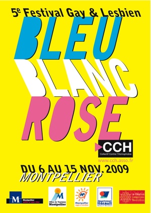 Du 6 au 15 novembre 2009, l’équipe du Collectif Contre l’Homophobie (CCH) vous donne rendez-vous pour la 5e édition de Bleu, Blanc, Rose, le festival gay et lesbien de Montpellier.