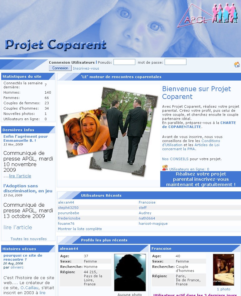 Notre nouveau service de rencontres coparentales est enfin LE site de rencontres dédié à ce projet, et il est gratuit : http://Coparentalite.Apgl.fr .