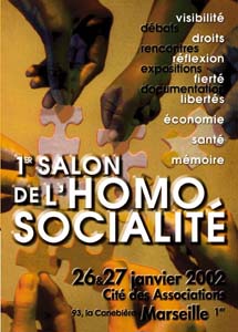 Le salon de l’homosocialité de Marseille est organisé par Mémoire des Sexualités, une association qui existe depuis 1989 dans la cité phocéenne. Elle relaie les initiatives de sa grande soeur nationale et organise localement des débats publics sur la sexualité, l’homosexualité et la lutte contre le sida. Elle participe activement aux moments importants de commémoration (journée du souvenir de la déportation) et travaille à constituer un centre de documentation sur la vie associative gaie.