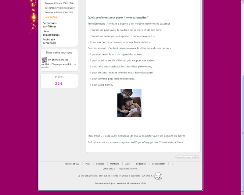 SOS Homophobie s’émeut du contenu d’une page publiée sur le site du lycée Robert Schuman du Havre, qui collectionne les clichés les plus éculés sur l’homoparentalité.