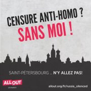 "Cette stratégie est incompatible avec une loi qui réduit au silence artistes, musiciens, écrivains et citoyens ordinaires qui vivent dans la ville ou la visitent", explique Andre Banks, directeur exécutif d’AllOut.org. "Cette loi, qui viole la Constitution russe et un grand nombre de traités internationaux, est une atteinte grave à la liberté d’expression de tous les Russes, quelle que soit leur identité sexuelle. Elle doit être abrogée."