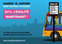 Après le succès des 18 marches en région et à Paris les 15 & 16 décembre, la FÉDÉRATION LGBT appelle les lesbiennes, gays, bi, trans (LGBT) et hétéros à de nouveaux rendez-vous en janvier 2013.