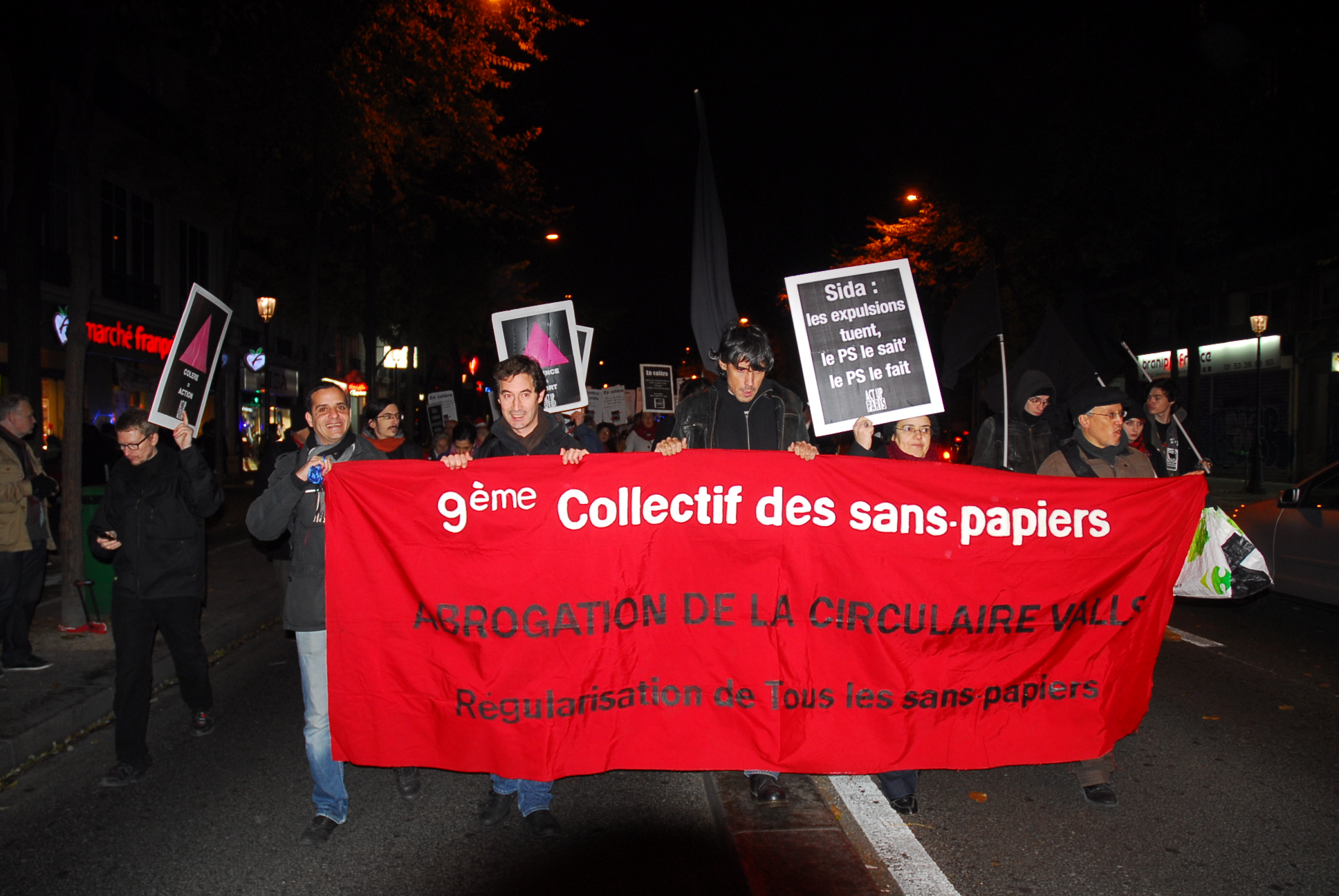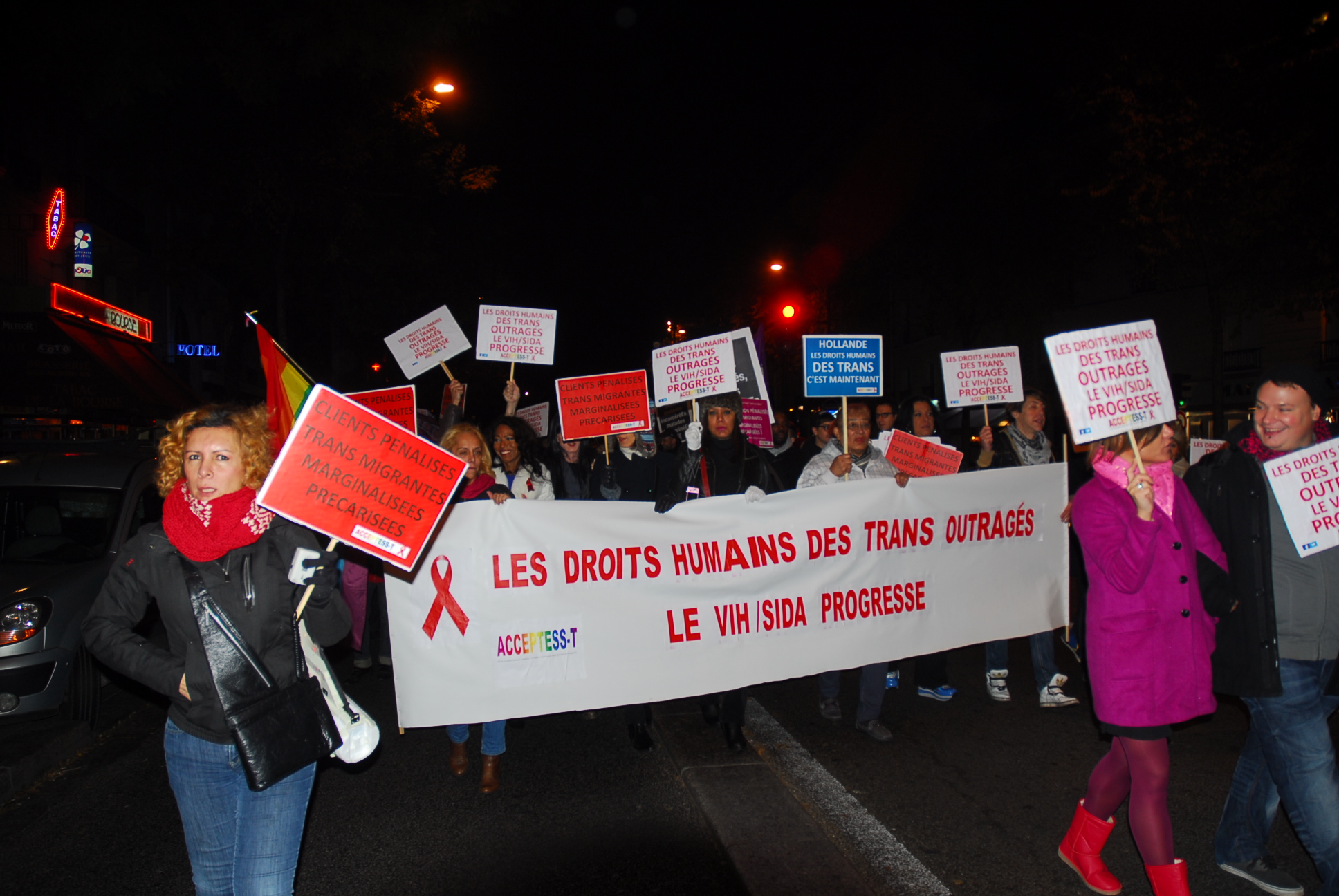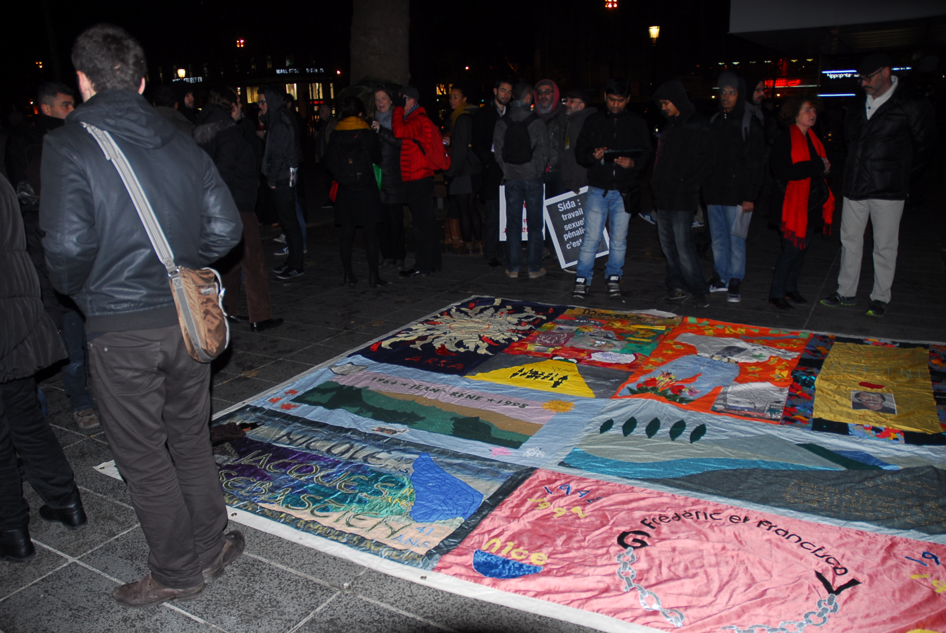 Plusieurs centaines de personnes ont répondu samedi 30 novembre à l’invitation d’Act Up Paris de manifester à l’occasion de la journée mondiale de lutte contre le sida. A l’issue d’un bref discours de la présidente d’Act Up, suivi du déploiement de quelques éléments du patchwork des noms, le cortège s’est ébranlé derrière la banderole rappelant le mot d’ordre « Sida : pas d’entrave à l’accès aux soins ! ».