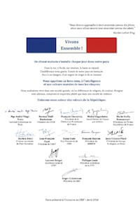 Le 7 avril 2014, des personnalités religieuses, politiques et syndicales se sont fendu d’un appel intitulé « Vivons ensemble » publié dans plusieurs journaux. Sur le papier, on ne peut que souscrire à une telle initiative...