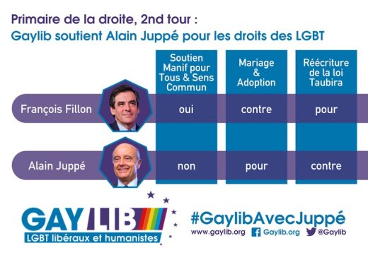 Gaylib soutient Alain Juppé pour le second tour des primaires de la Droite et du Centre.