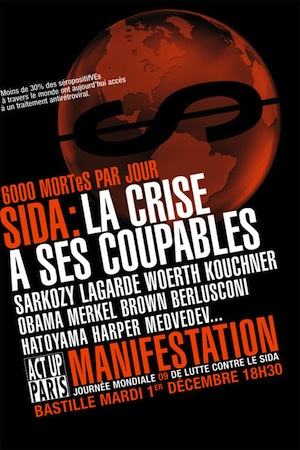 A l’occasion de la journée mondiale de lutte contre le sida, le 1er décembre prochain, Act Up-Paris appelle à manifester - place de la Bastille à 18h30 - derrière le mot d’ordre : « Sida : la crise a ses coupables ».